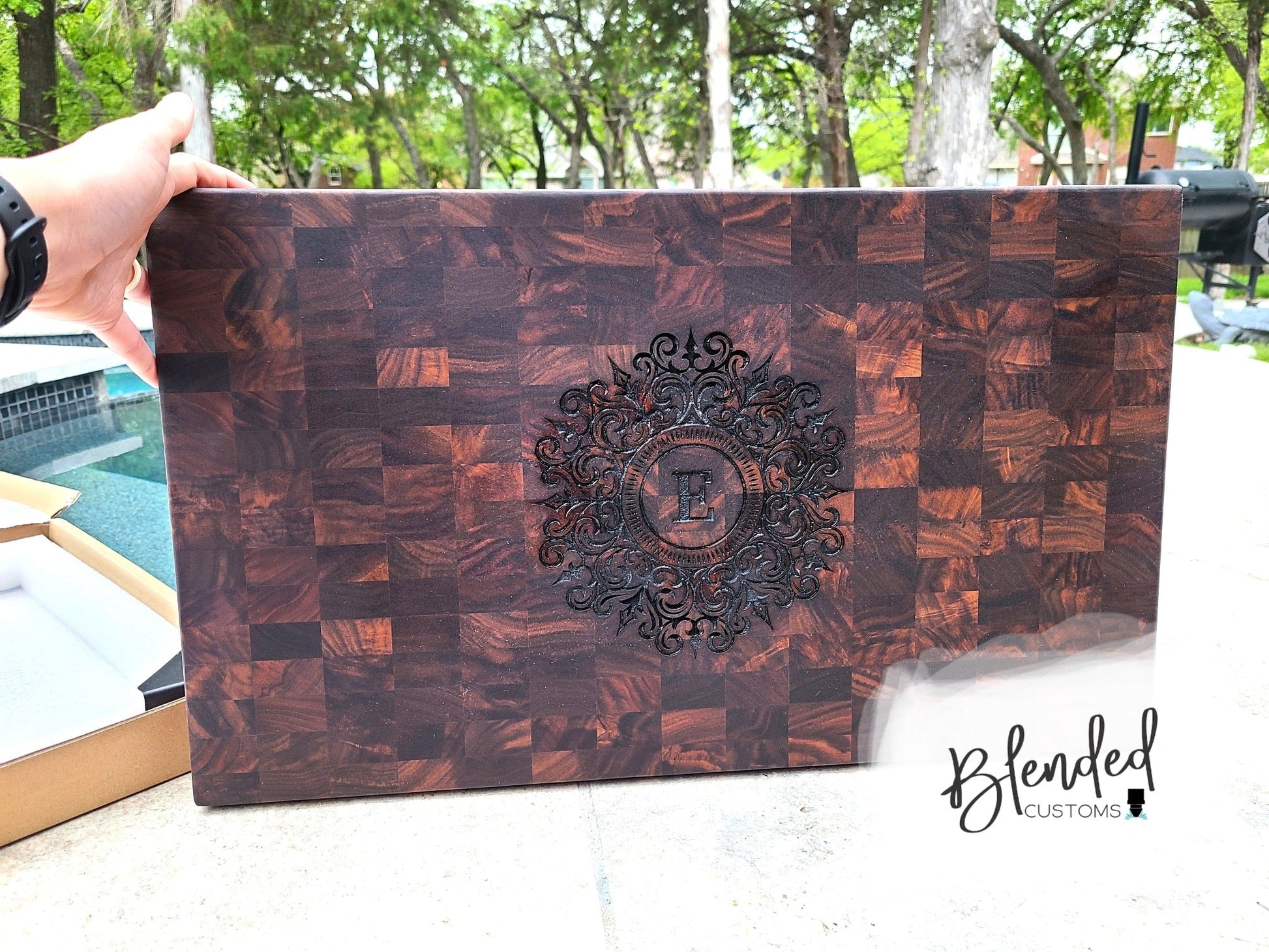 Celebrate special occasions with a personalized laser engraved cutting board from Blended Customs. Our attention to detail ensures your message is perfectly engraved for a truly unique gift that will last a lifetime. Give something truly special and make memories that will stand the test of time! Each of Blended Customs cutting boards feature a stunning drip edge around the surface that nicely frames the large personalization area.