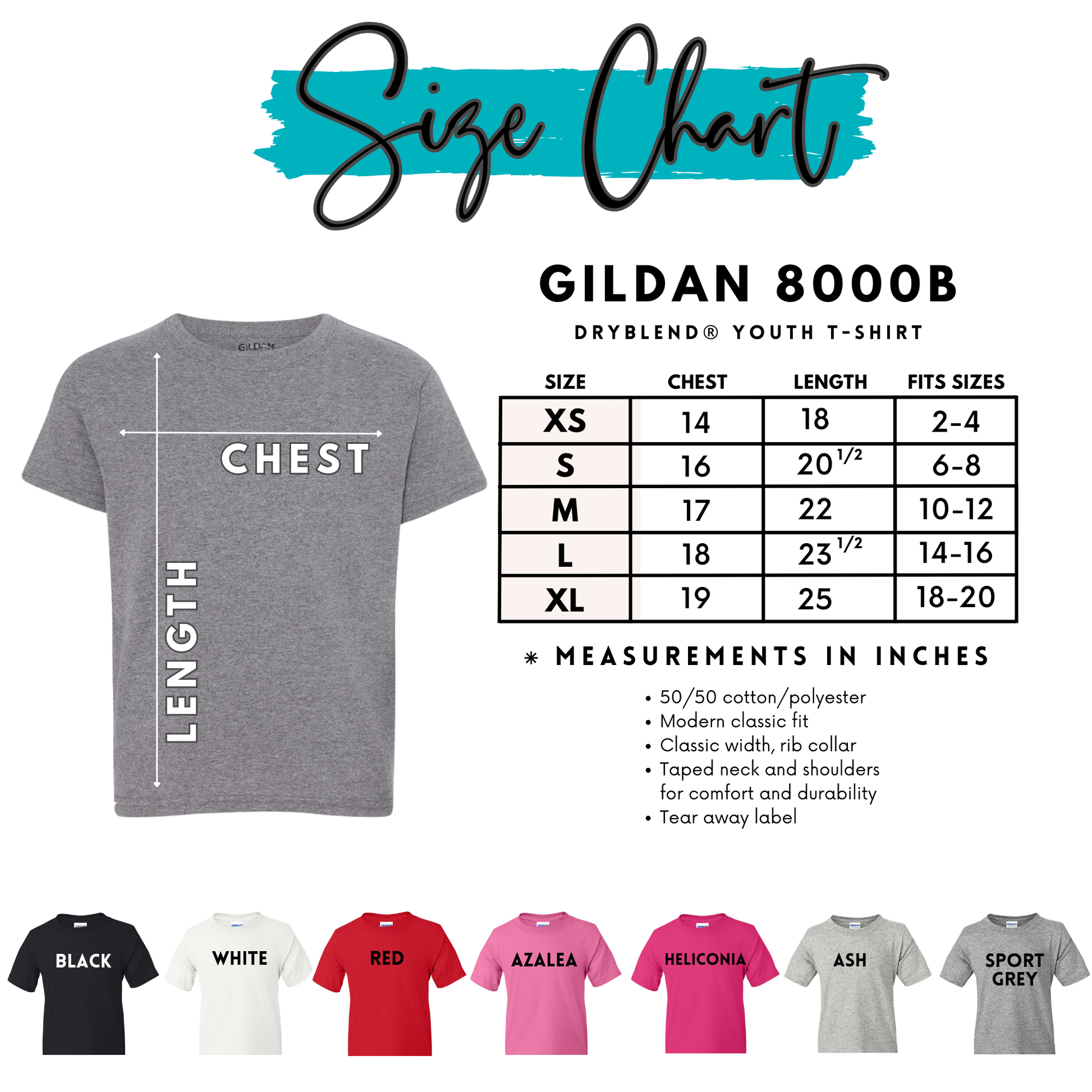 - 50% cotton / 50% polyester DryBlend® fabric